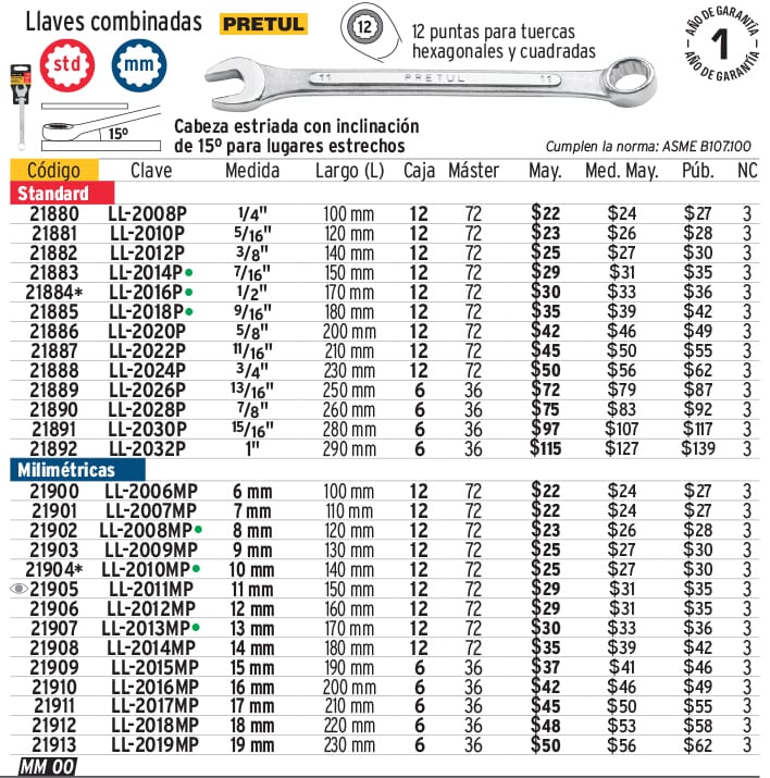 Llave combinada 5/8" x 200 mm de largo, PRETUL