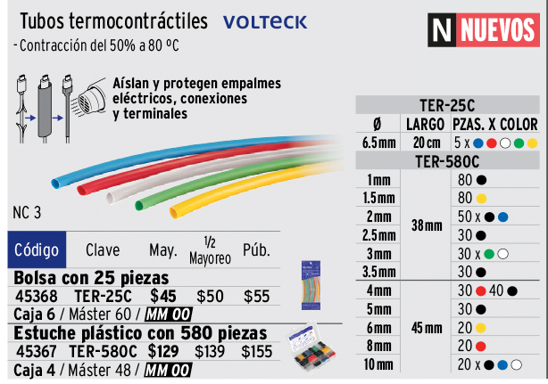 Estuche con 580 piezas de tubo termocontráctil, VOLTECK