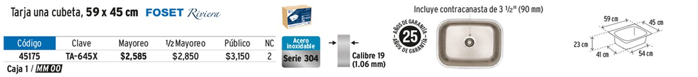 Tarja de submontar 59 x 45 x 23 cm, FOSET RIVIERA