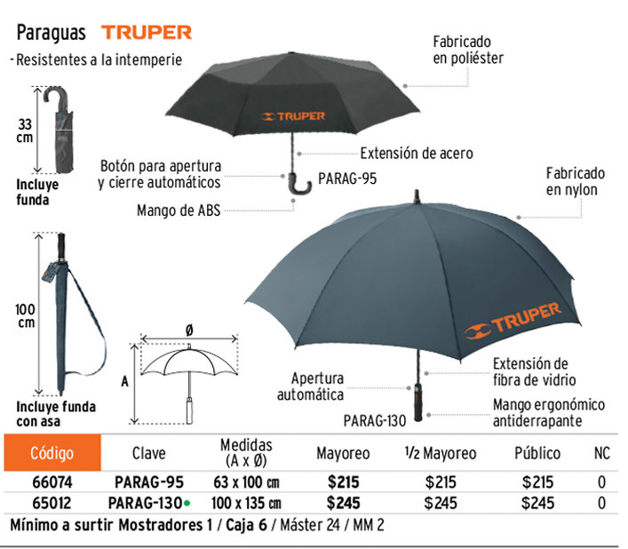 Paraguas compacto de 100 cm, TRUPER