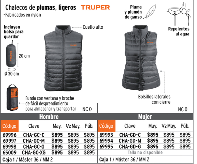 Chaleco de plumas ligero para hombre, gris, CH, TRUPER