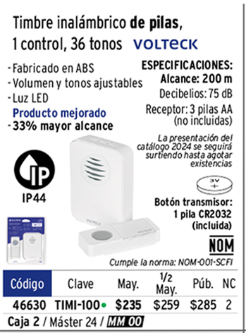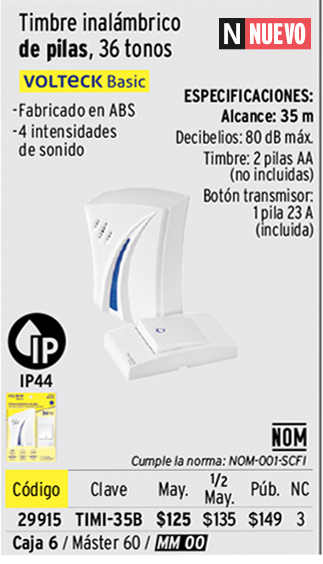 Timbre inalámbrico de pilas, 36 tonos, VOLTECK BASIC