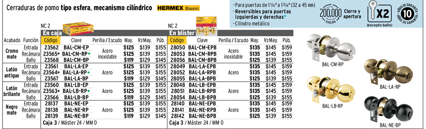 Cerradura esfera cilíndrico, entrada, cromo, blíster, BASIC