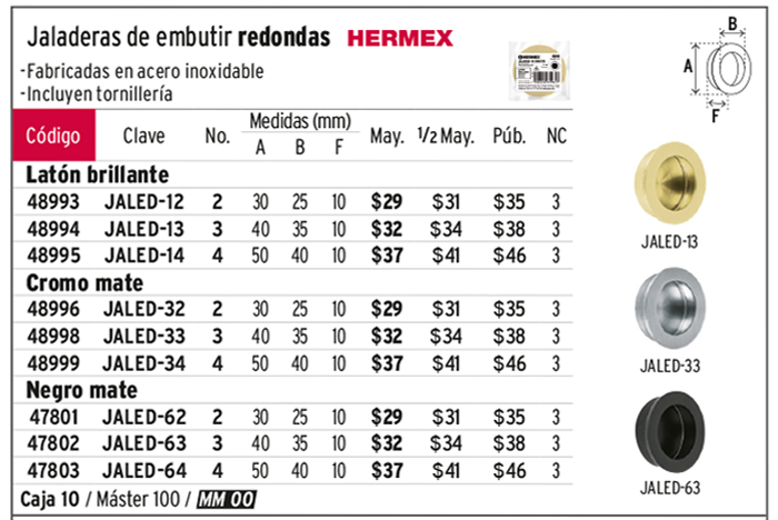 Jaladera de embutir circular No. 3 acabado cromo mate