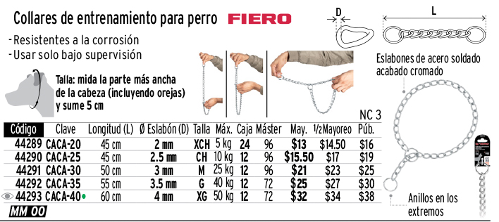 Collar de entrenamiento para perro, 50 cm, eslabón de 3 mm