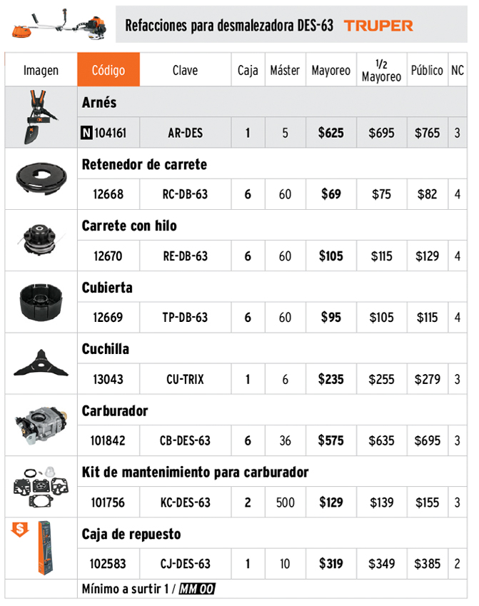 Carburador para desmalezadora a gasolina DES-63, TRUPER