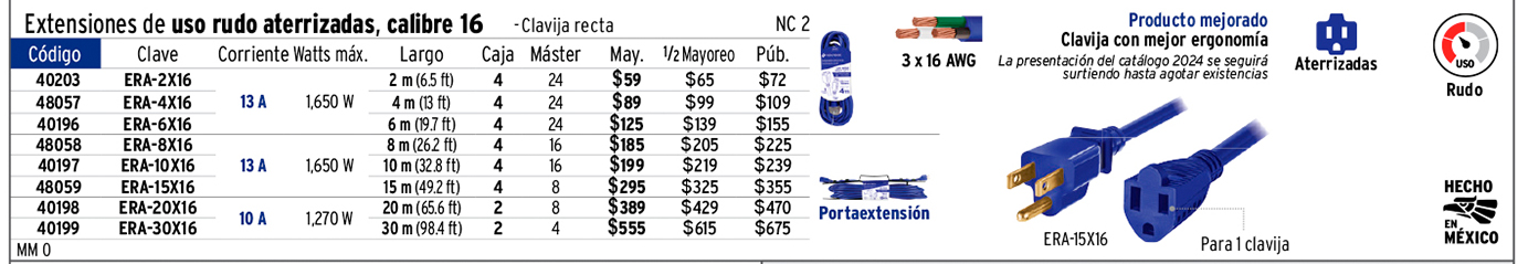 Extensión de uso rudo aterrizada 8 m 3x16 AWG, VOLTECK