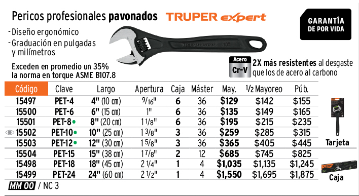 Llave ajustable (perico) 15" profesional pavonada, EXPERT