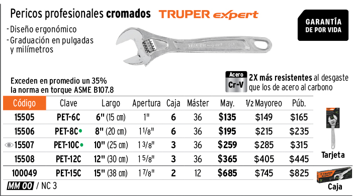 Llave ajustable (perico) 15" profesional cromada, EXPERT