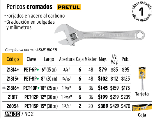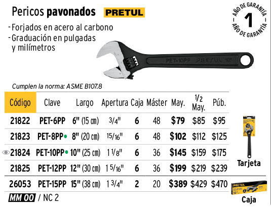 Llave ajustable (perico) 15" pavonada, PRETUL