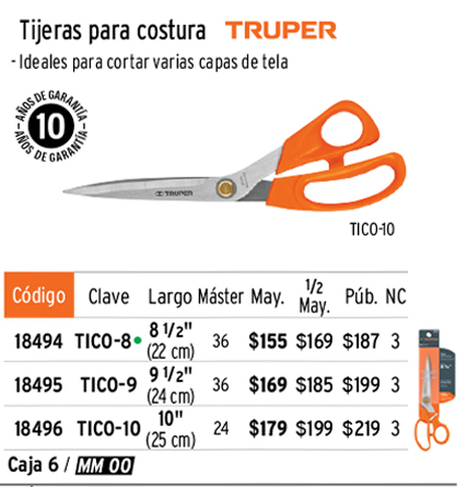 Tijera 10" para costura, de acero inoxidable, TRUPER