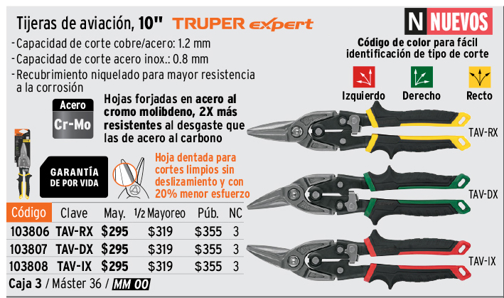 Tijera de aviación 10" corte recto, TRUPER EXPERT