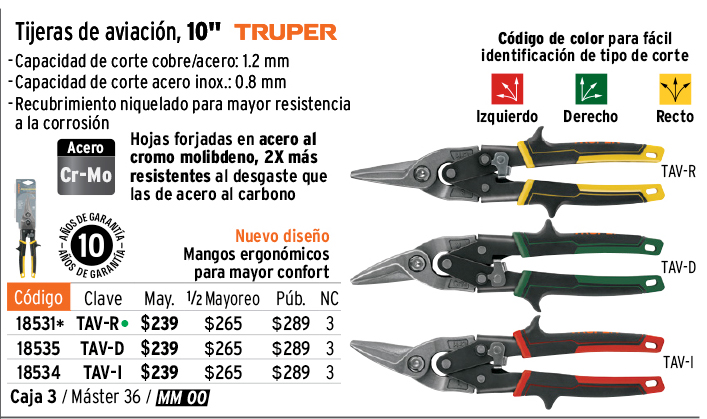 Tijera de aviación 10" corte derecho, TRUPER EXPERT