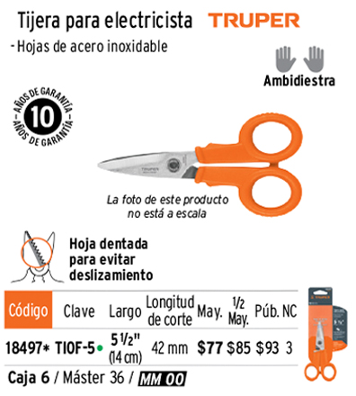 Tijera 5-1/2" para electricista, acero inoxidable, TRUPER