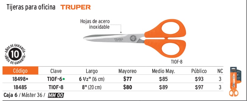 Tijera 6-1/2" para oficina, de acero inoxidable, TRUPER