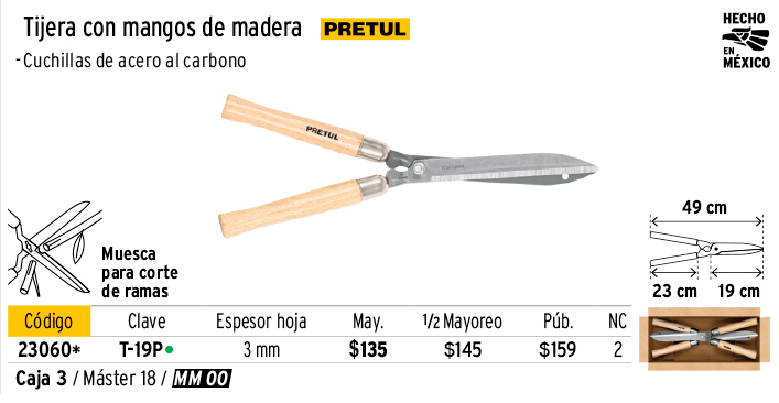 Tijera para poda 49 cm, mangos de madera, PRETUL