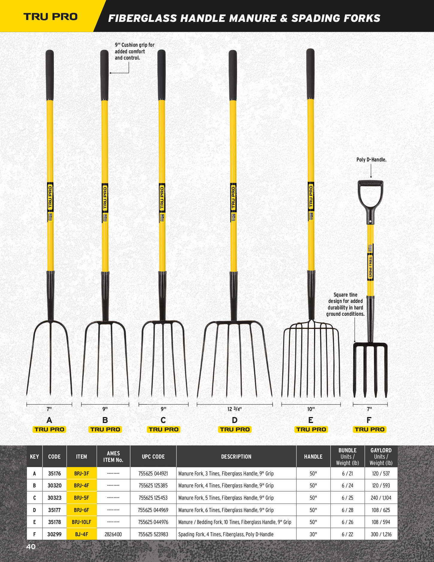 FIBERGLASS HANDLE MANURE & SPADING FORKS
