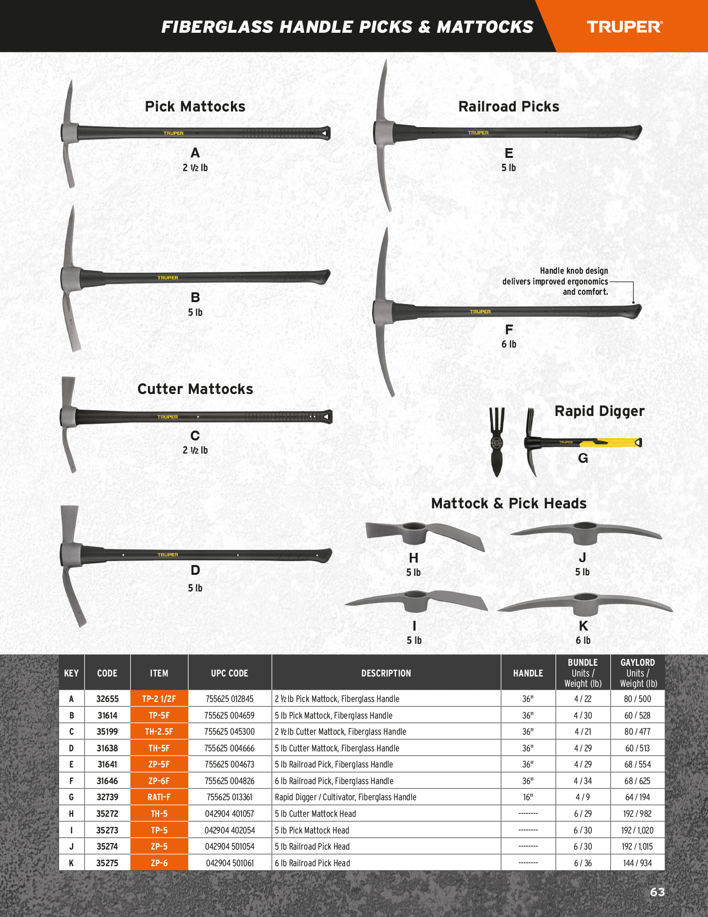 FIBERGLASS HANDLE PICKS & MATTOCKS