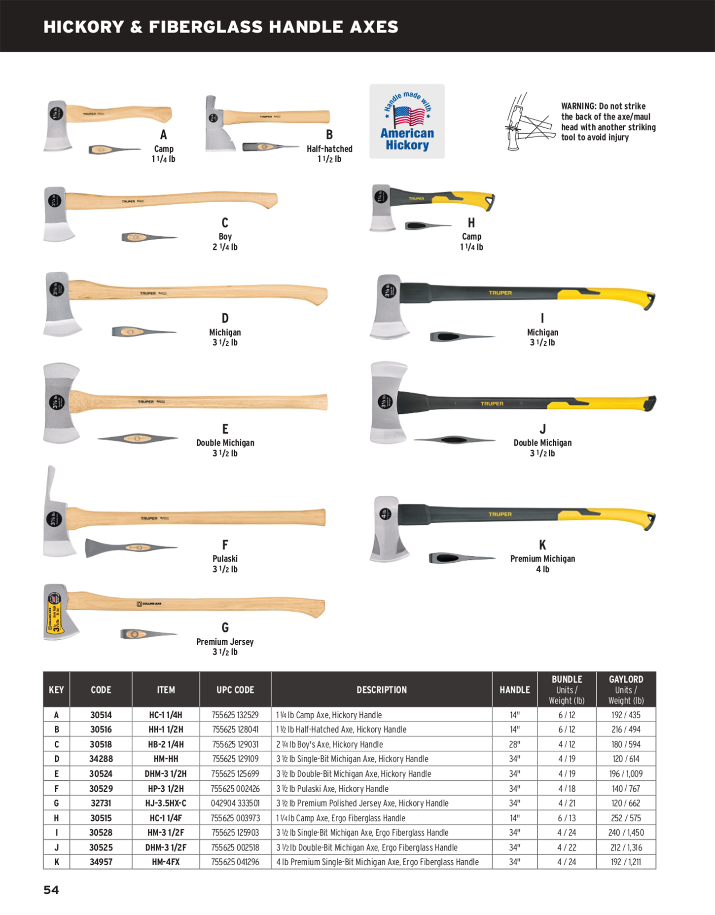 HICKORY & FIBERGLASS HANDLE AXES