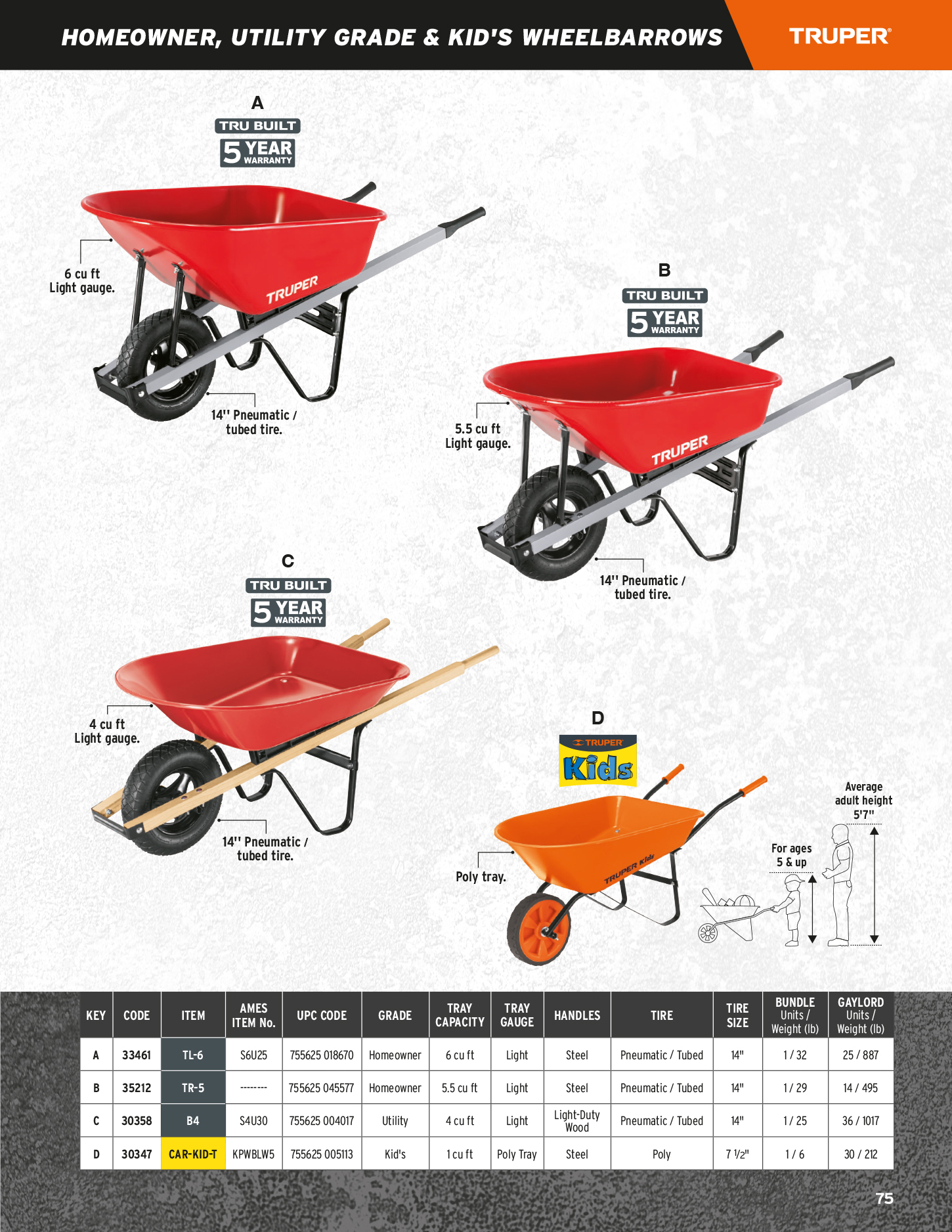 HOMEOWNER, UTILITY GRADE & KID'S WHEELBARROWS