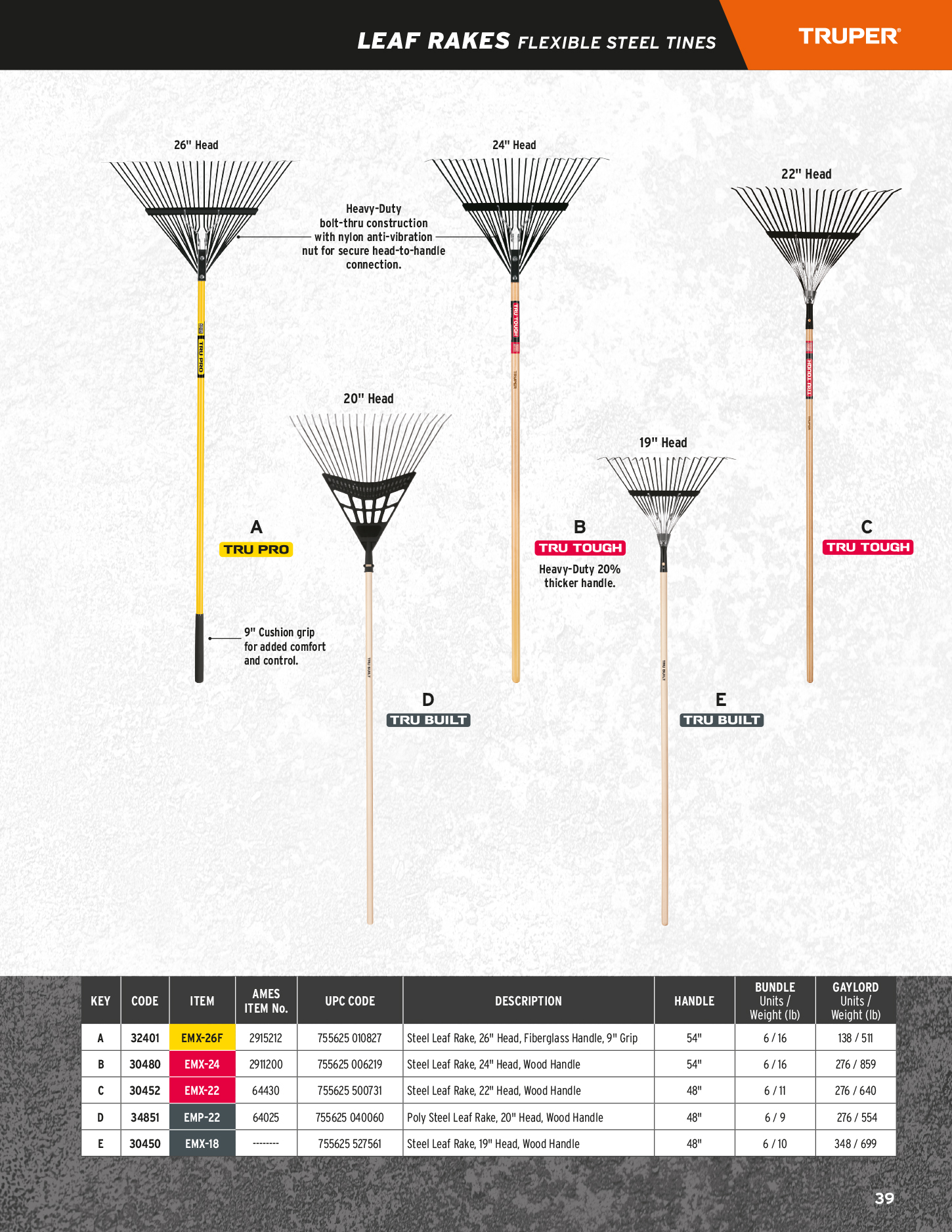 LEAF RAKES FLEXIBLE STEEL TINES