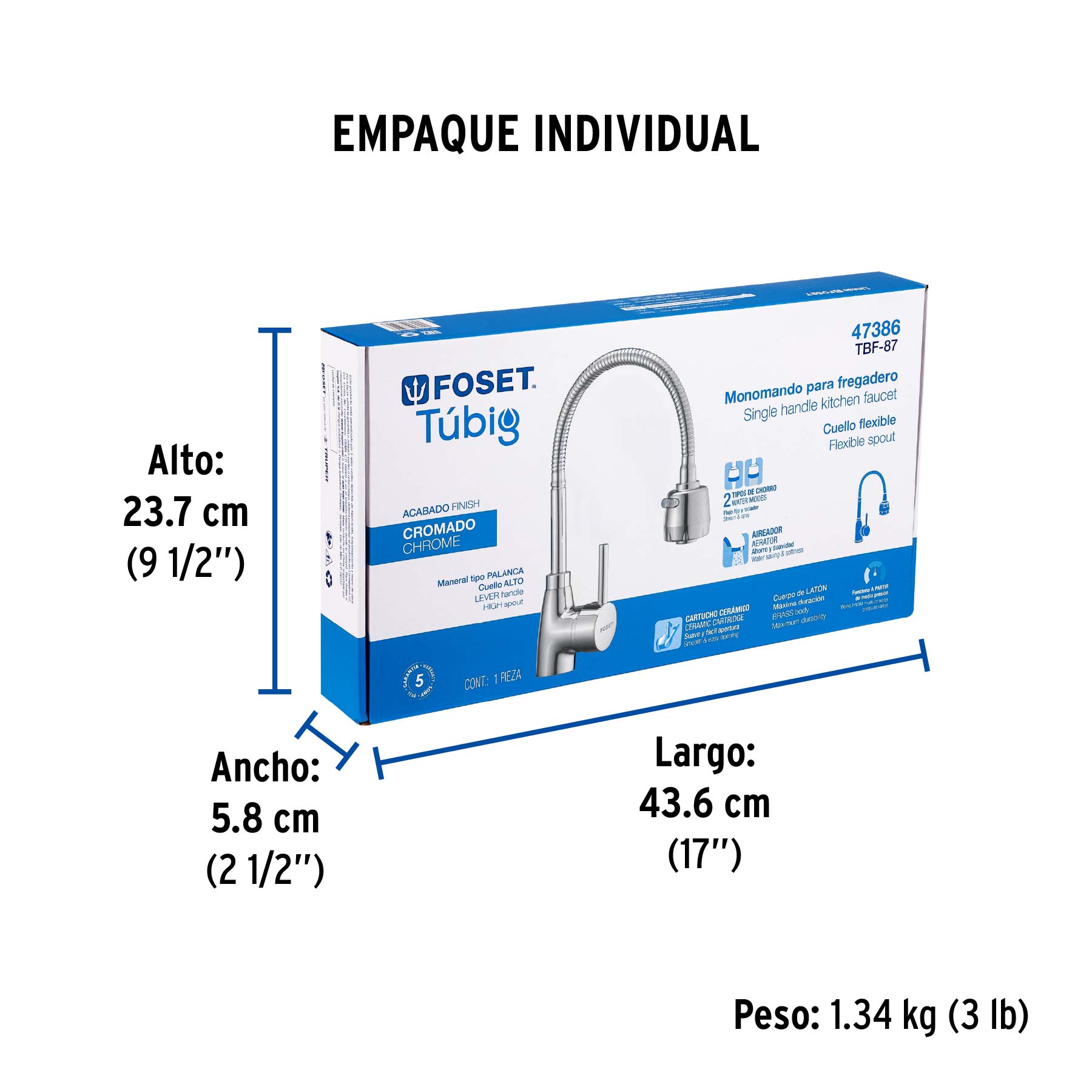 Monomando para fregadero con cuello flexible, cromo, TÚBIG