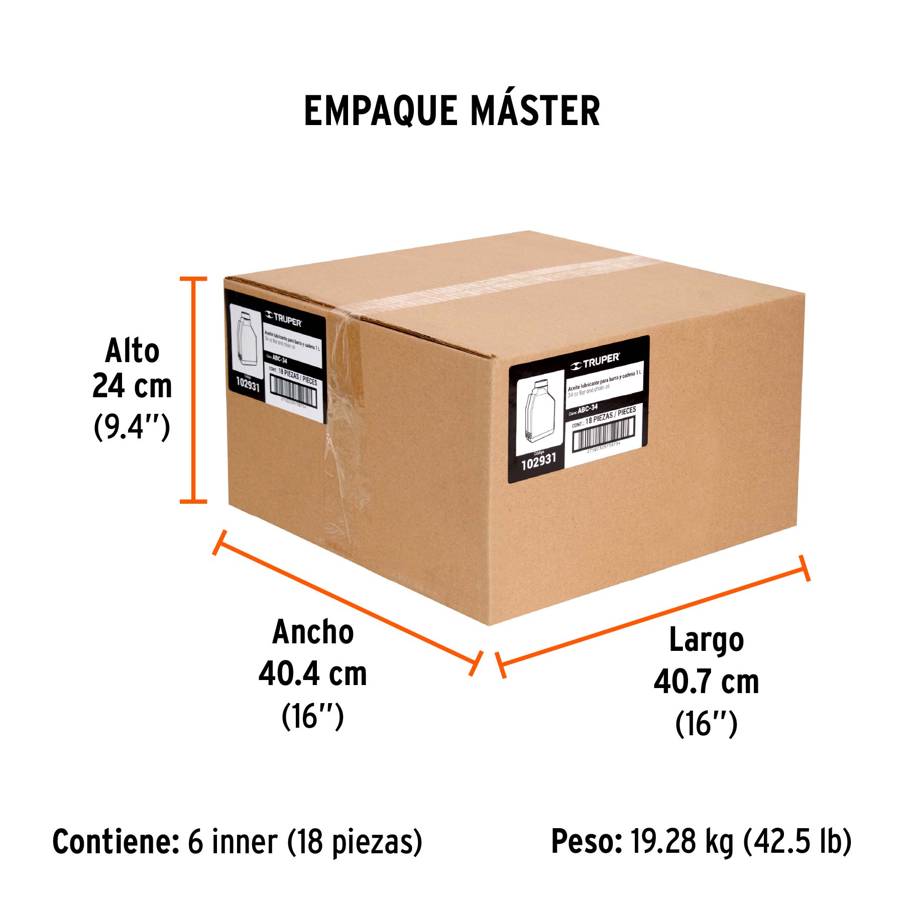 Garantizado contra defectos de fabricación o mano de obra. La garantía se puede hacer válida con cualquier distribuidor de TRUPER