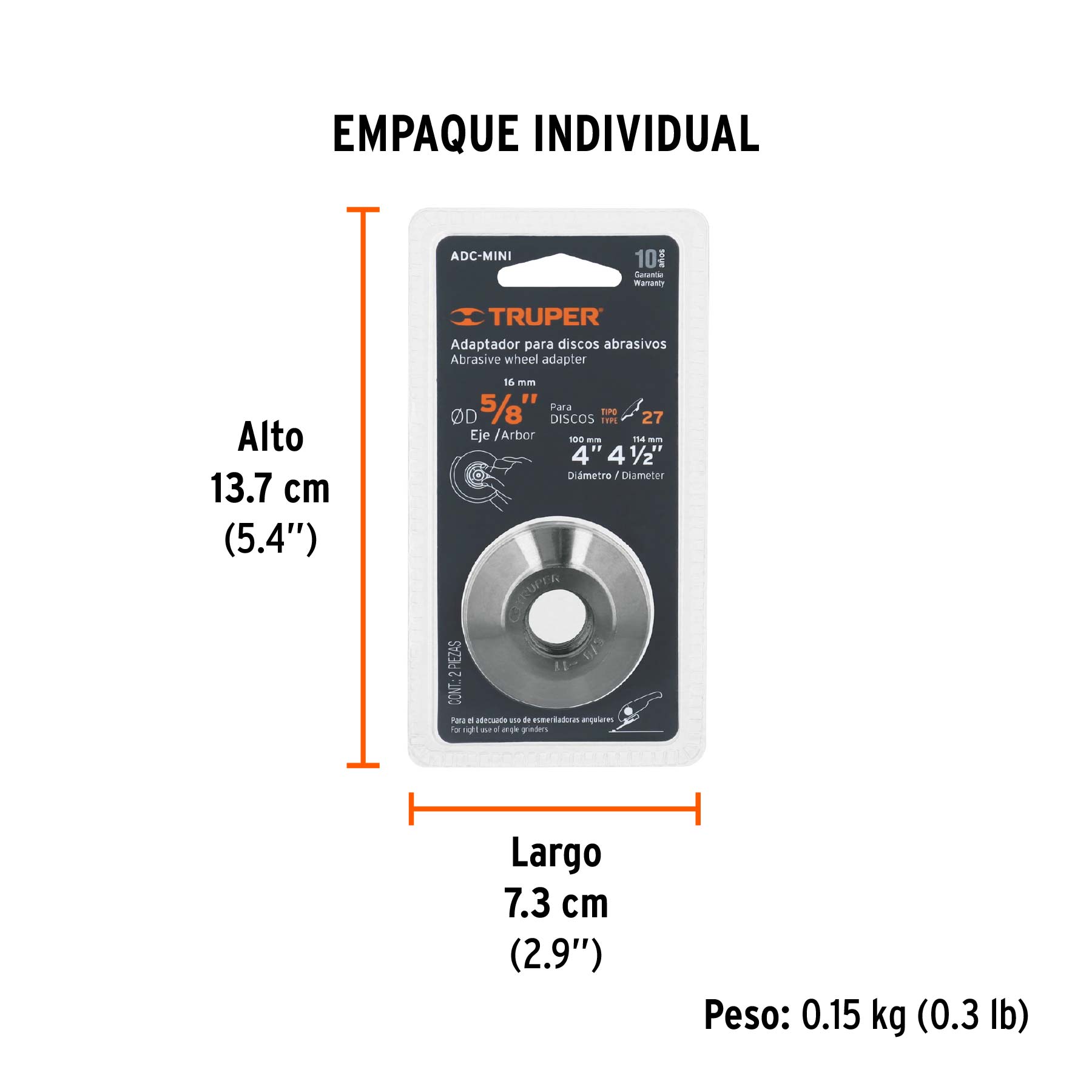 Adaptador para discos abrasivos 4" y 4-1/2", tipo 42, 5/8-11