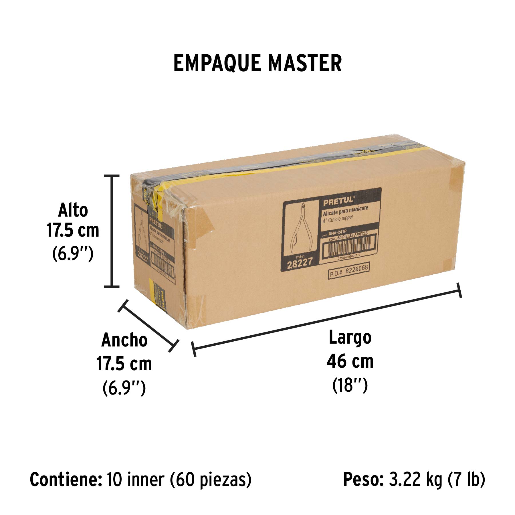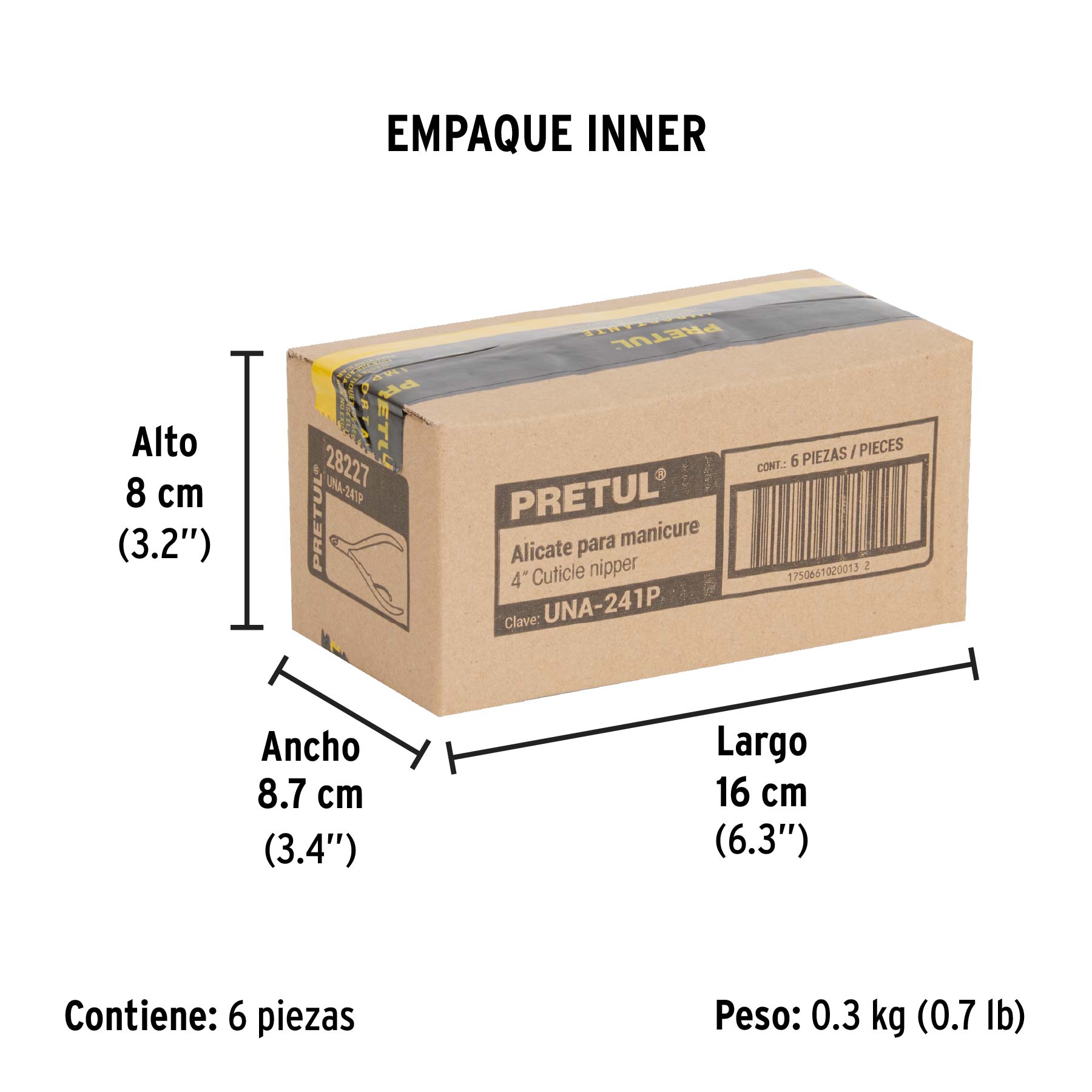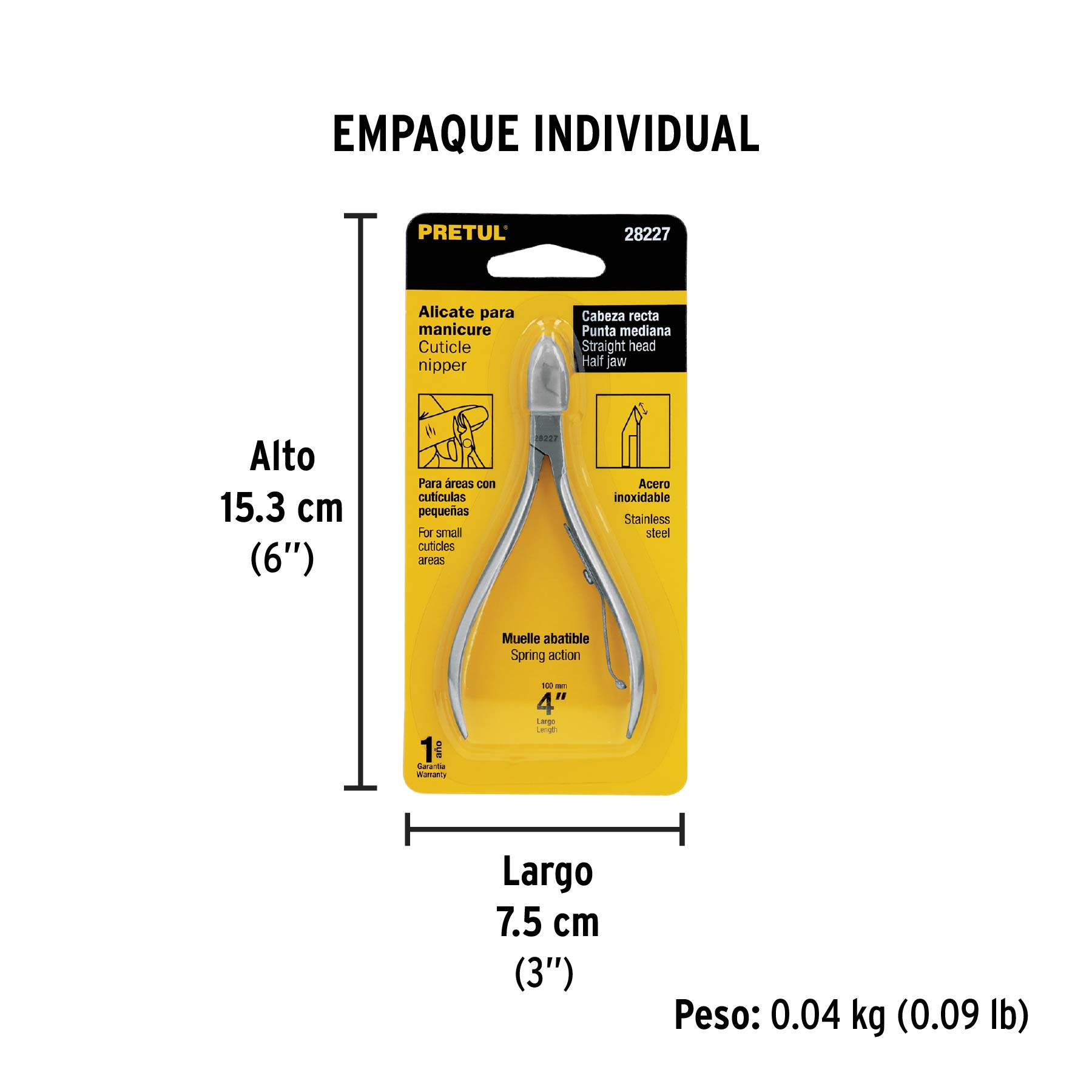 Alicate para manicure 4" cabeza recta, punta mediana, PRETUL