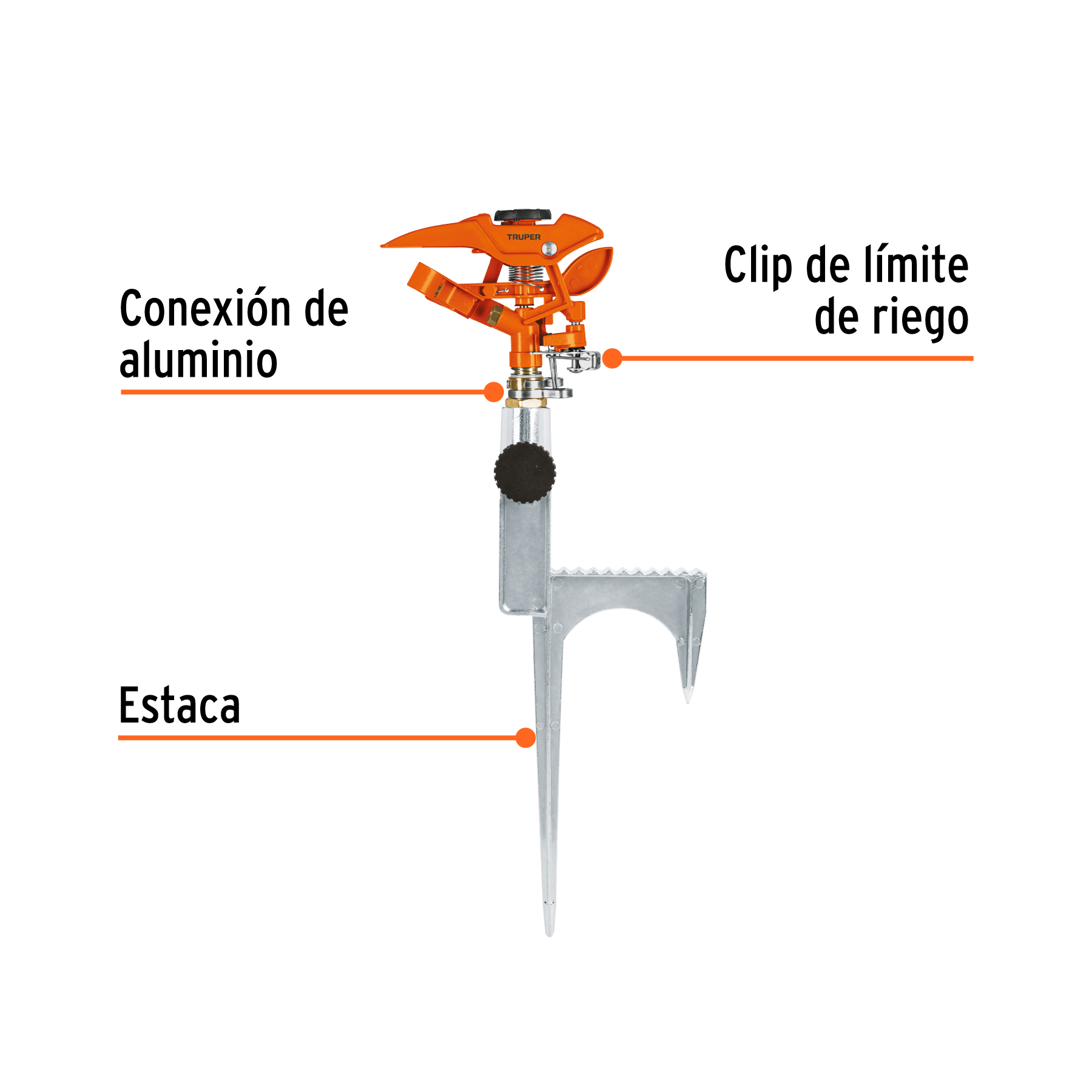 Aspersor metálico 14" dos vías, reforzado, estaca de escalón