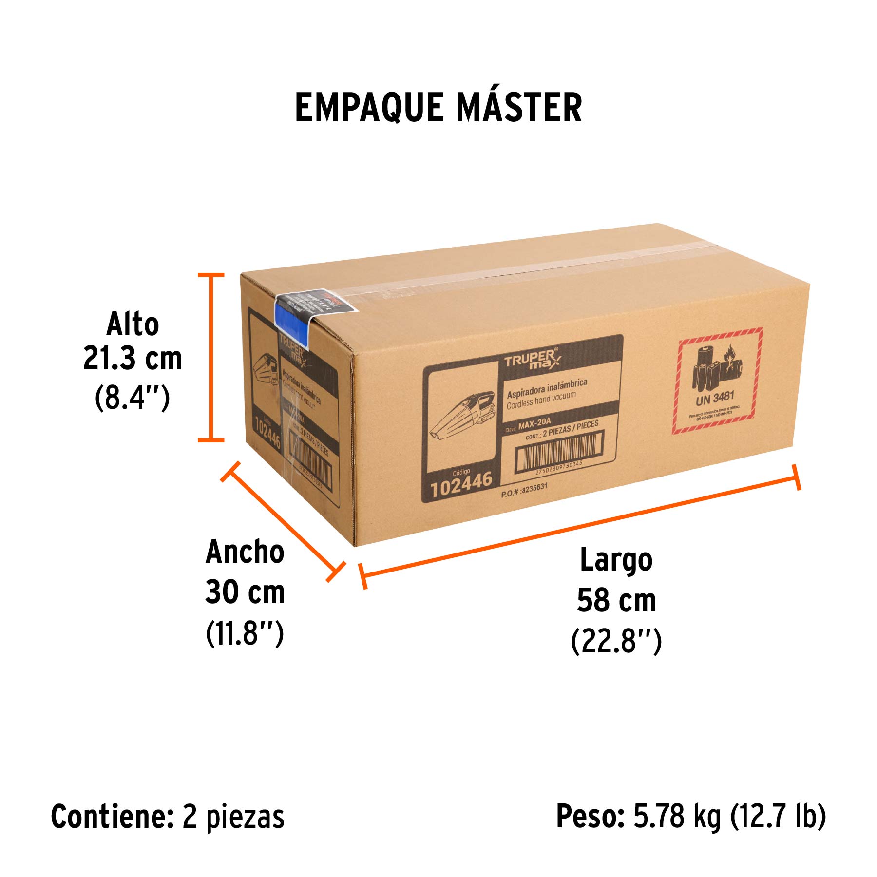 Aspiradora para auto, 20V, 1 batería 2Ah, MAX
