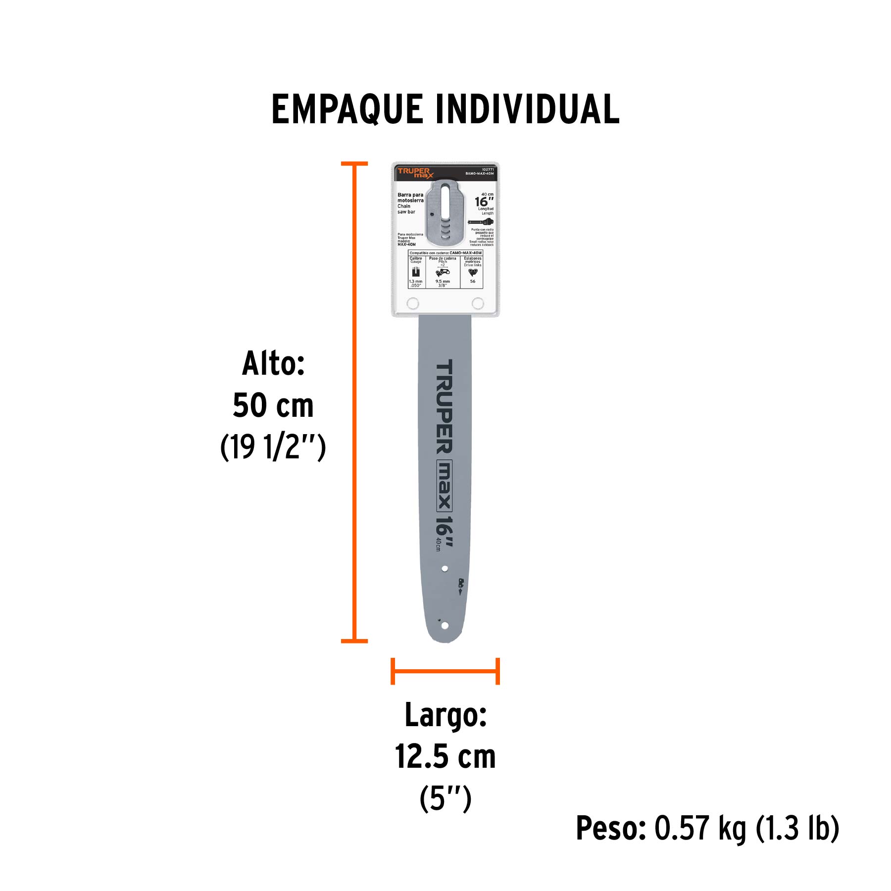Barra de repuesto 16" p/motosierra MAX-40M, TRUPER MAX