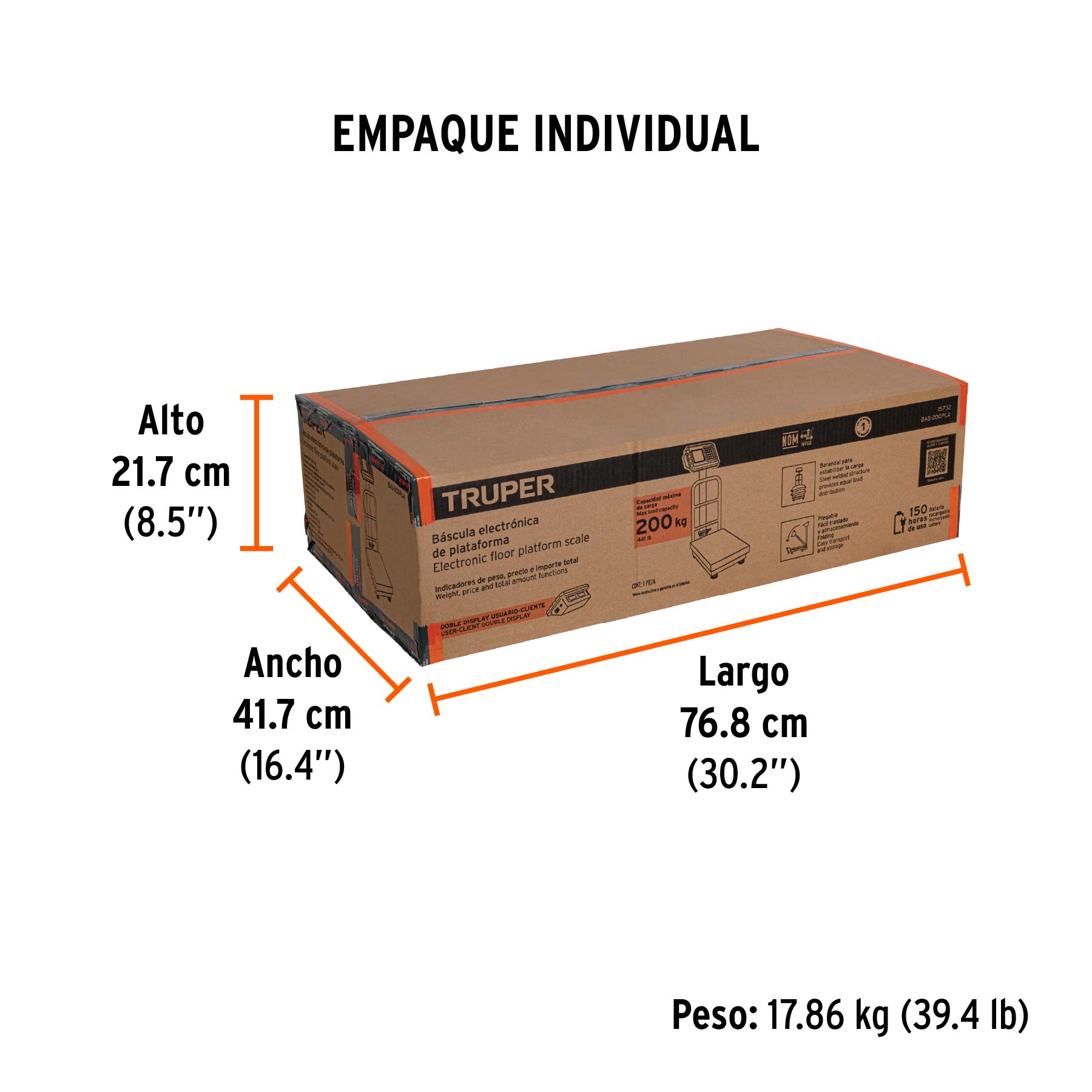 Báscula electrónica de plataforma, plegable, 200 kg, TRUPER