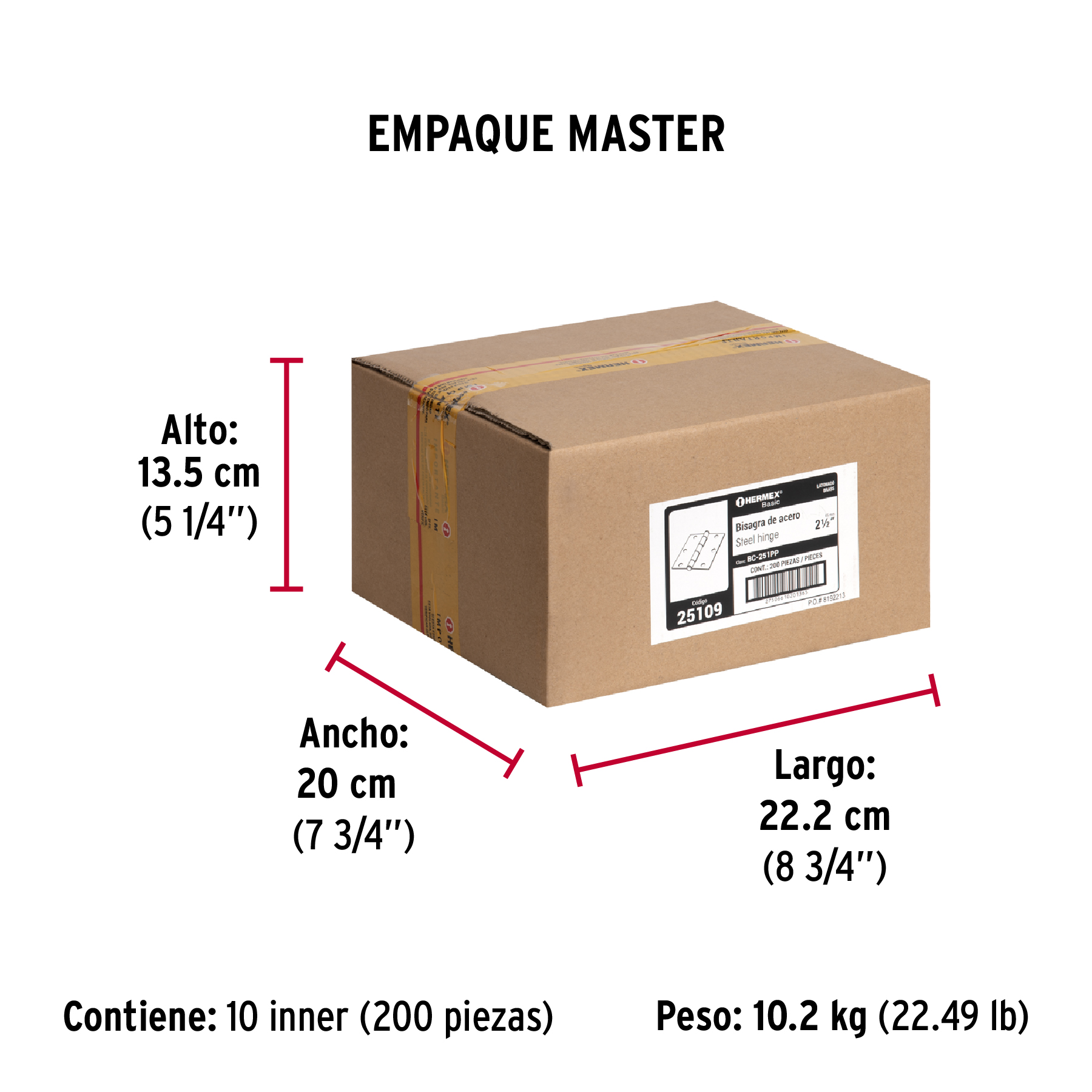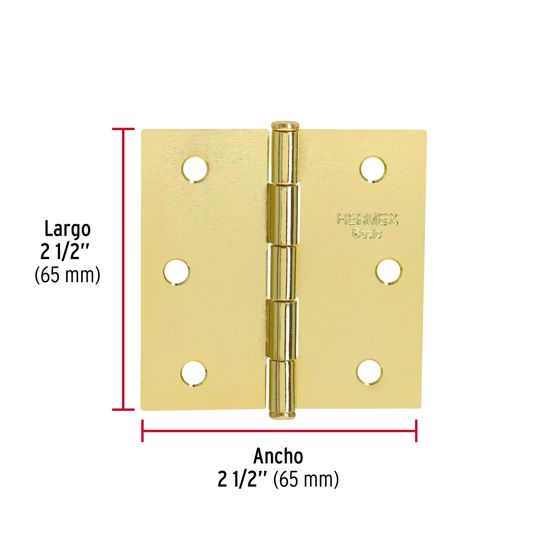 Bisagra cuadrada 2-1/2",latonado, cabeza plana, HERMEX BASIC