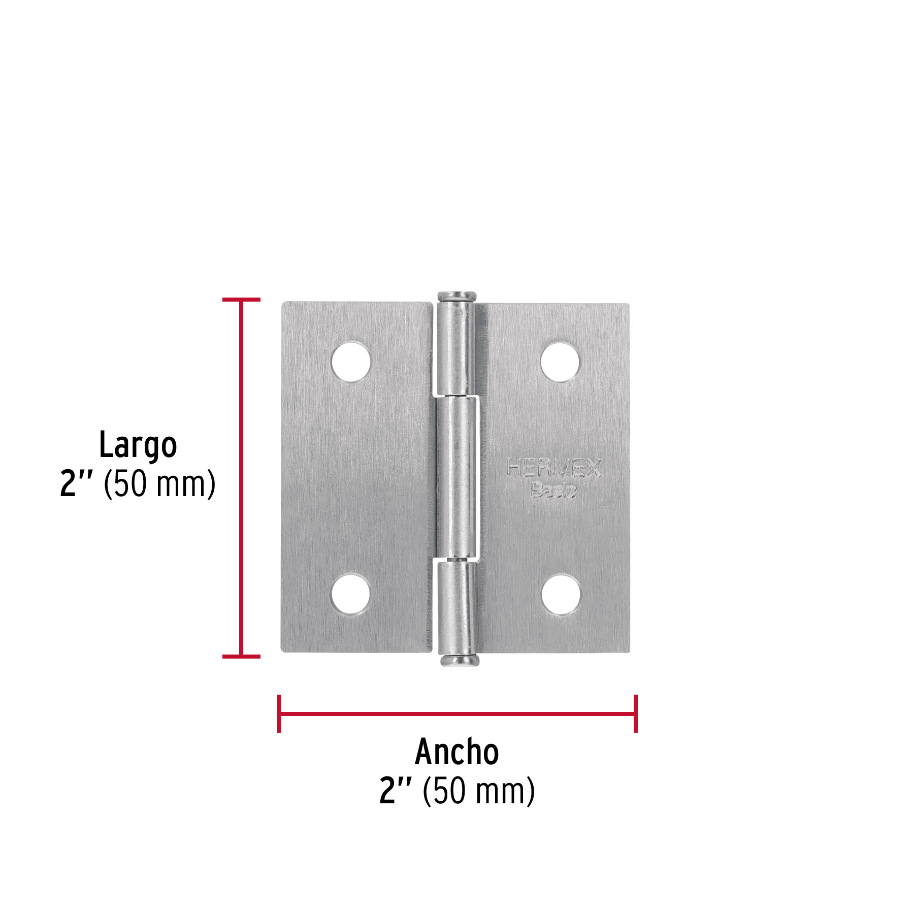 Bisagra cuadrada 2", satinado, cabeza plana, BASIC