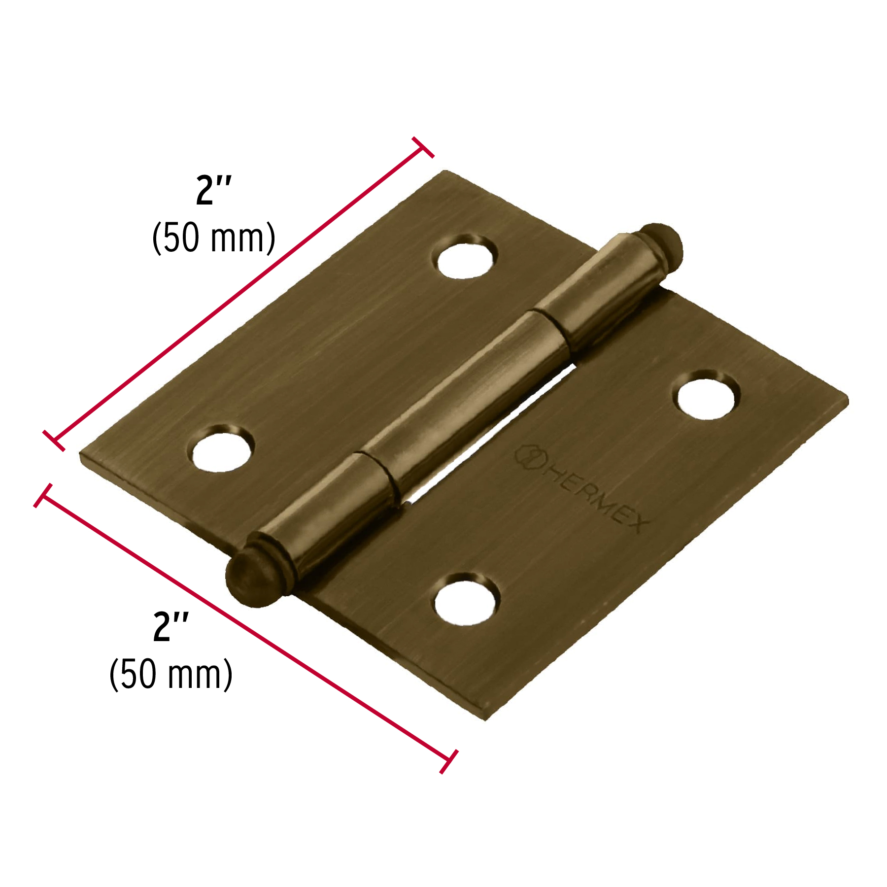 Bisagra cuadrada 2", latón antiguo, cabeza redonda, HERMEX