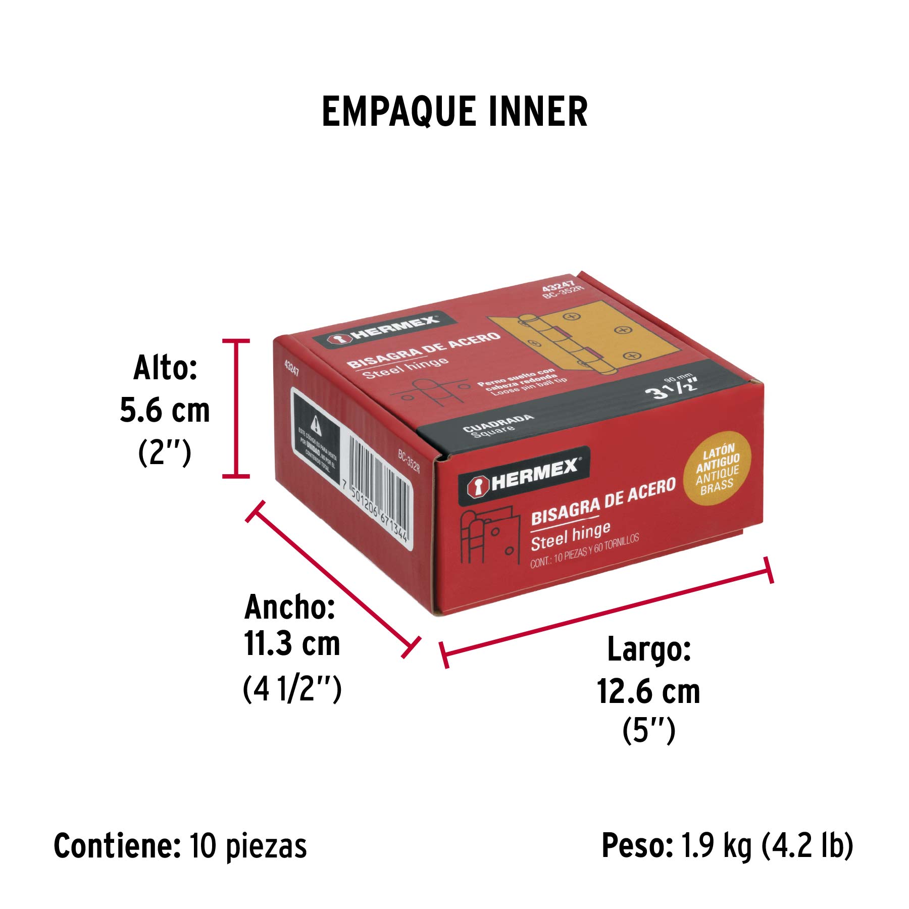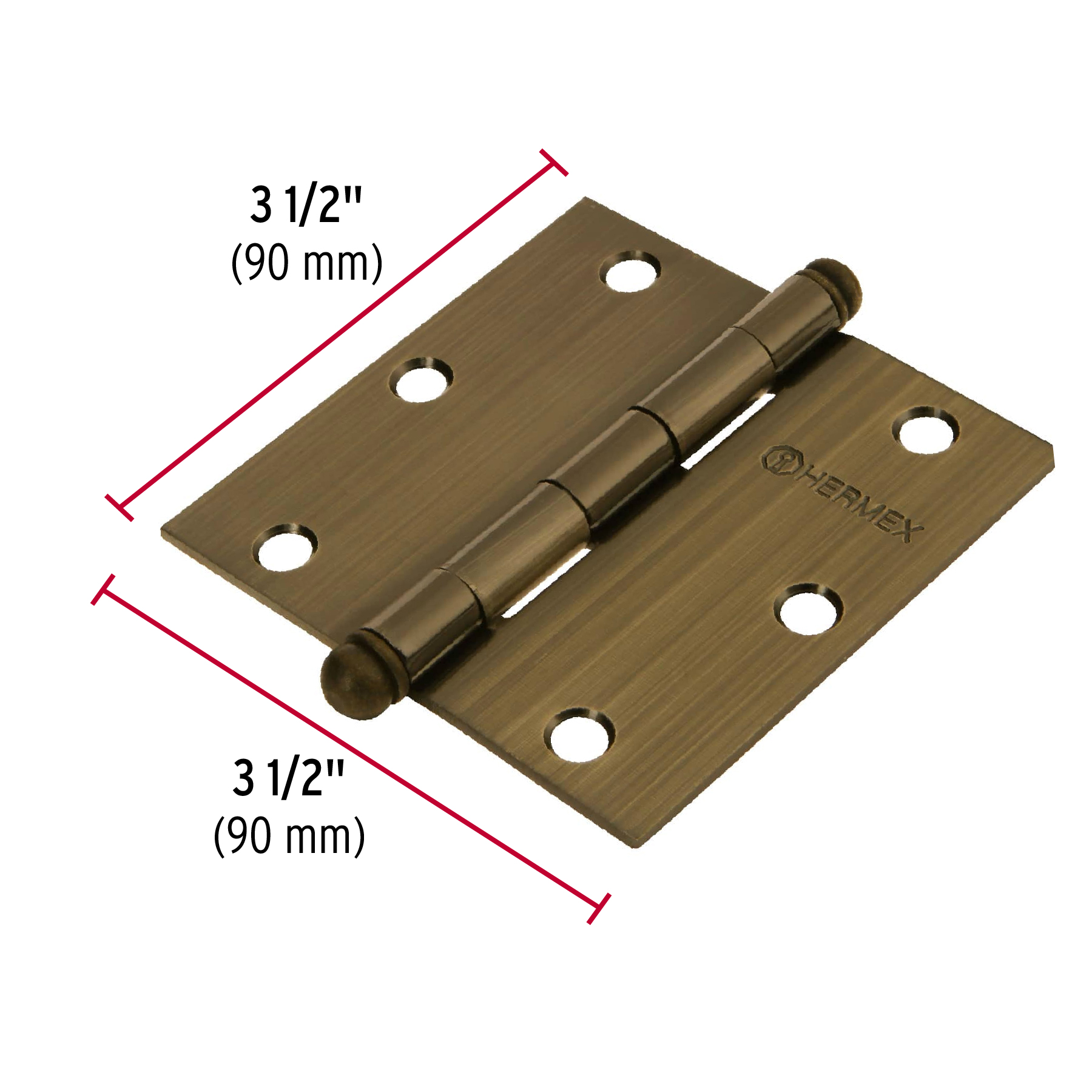 Bisagra cuadrada 3-1/2", latón antiguo, cabeza redonda