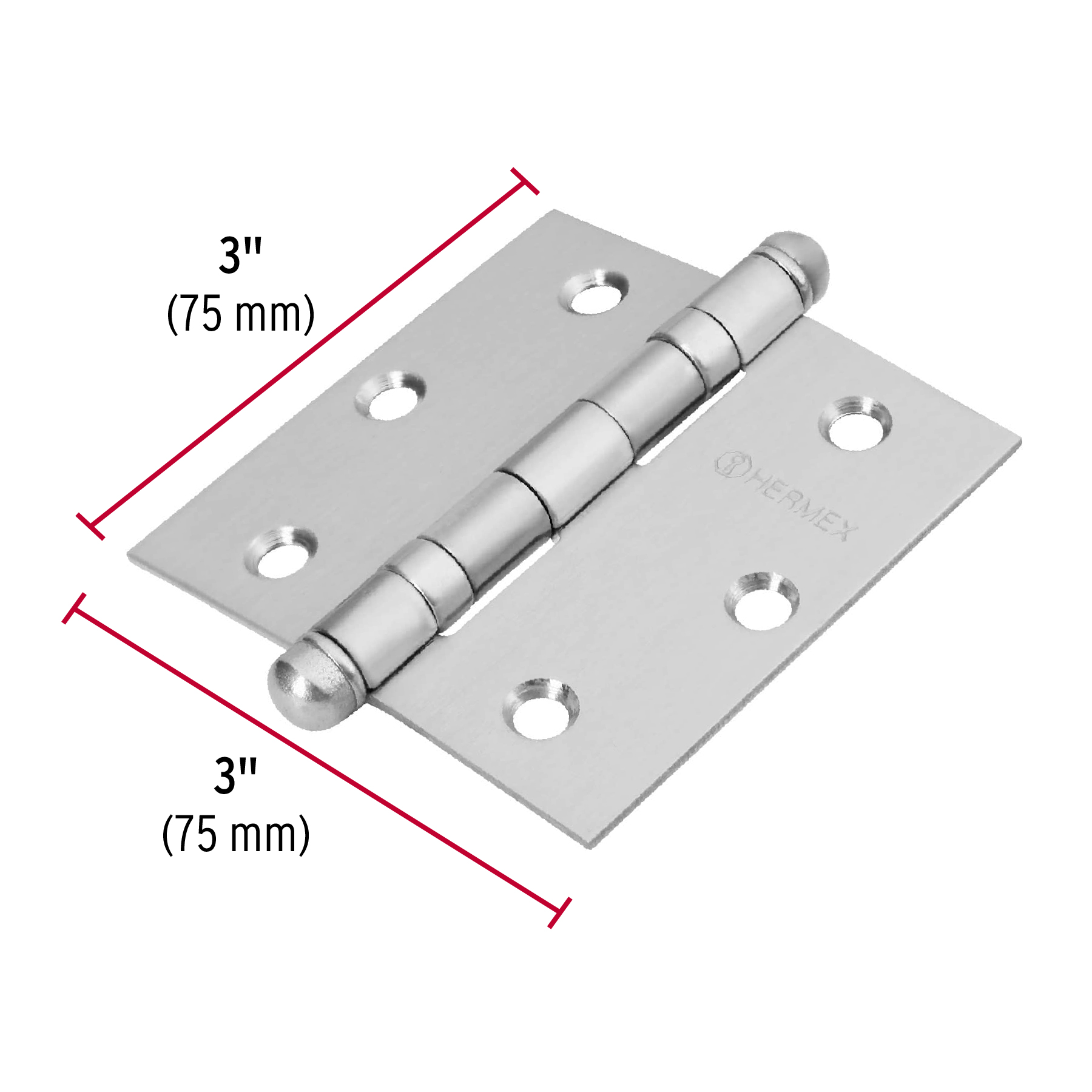 Bisagra cuadrada 3" acero inox, cabeza redonda, HERMEX