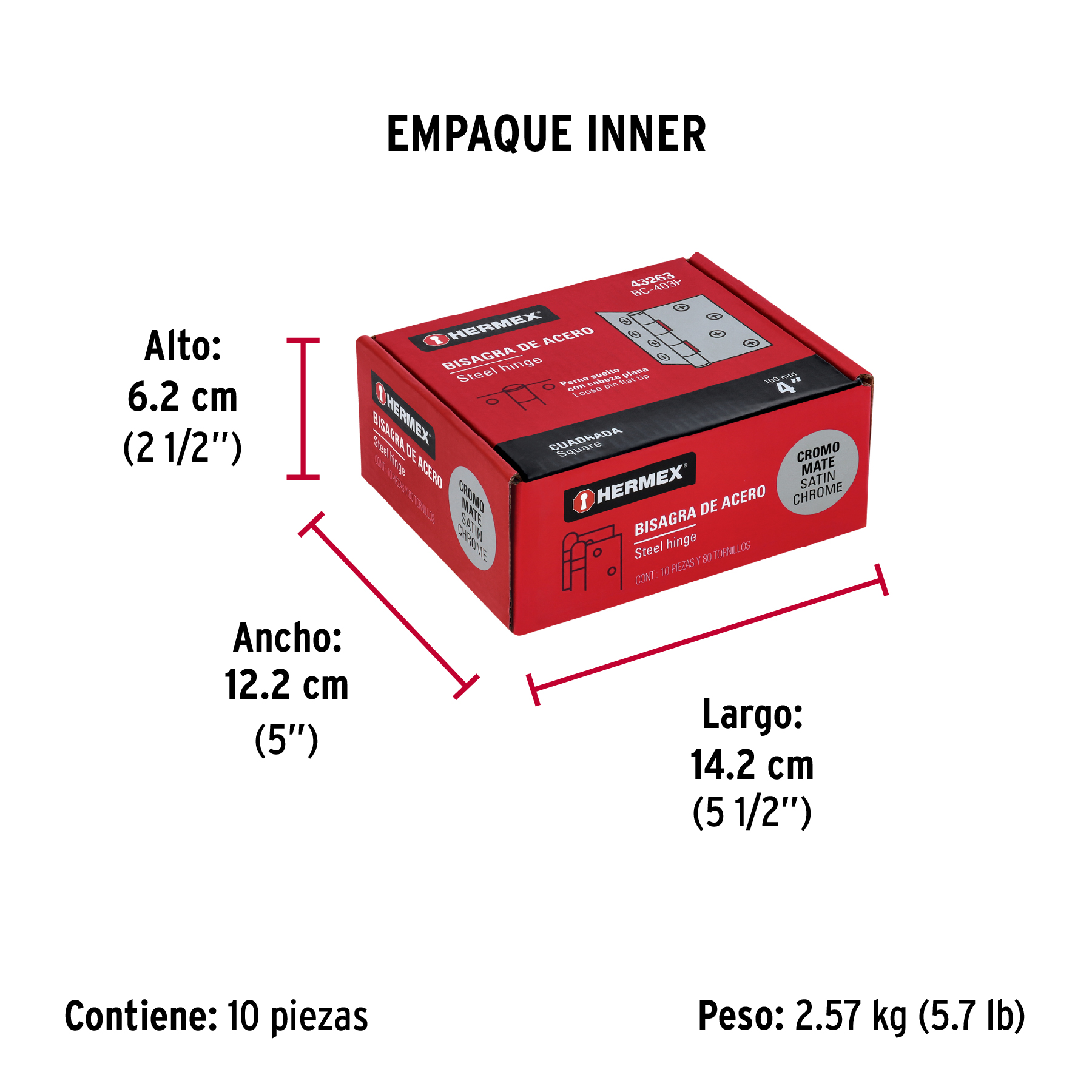 Bisagra cuadrada 4", satinado, cabeza plana, HERMEX
