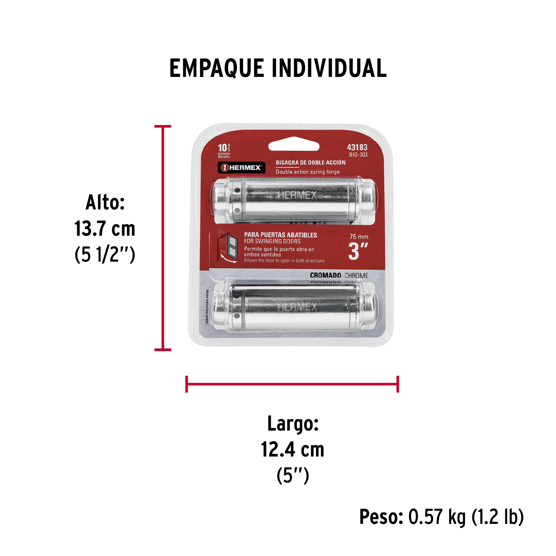 Bisagra de doble acción 3" acero cromado, HERMEX