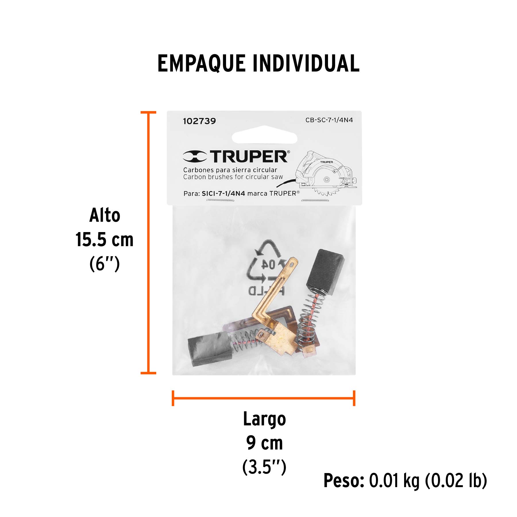Bolsa con 2 carbones de repuesto para SICI-7-1/4N4, TRUPER