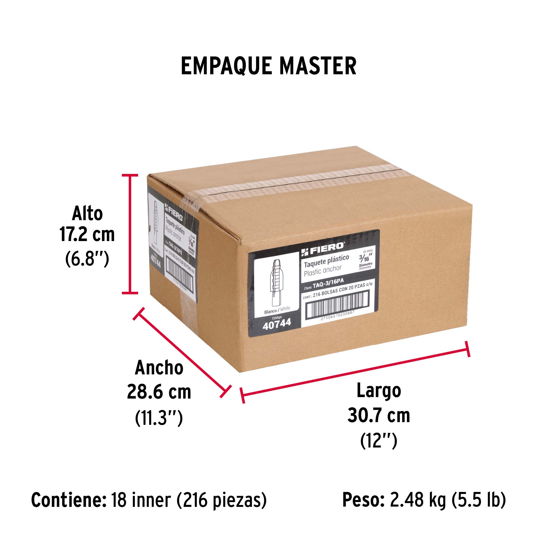 Bolsa con 20 taquetes de plástico 3/16", FIERO
