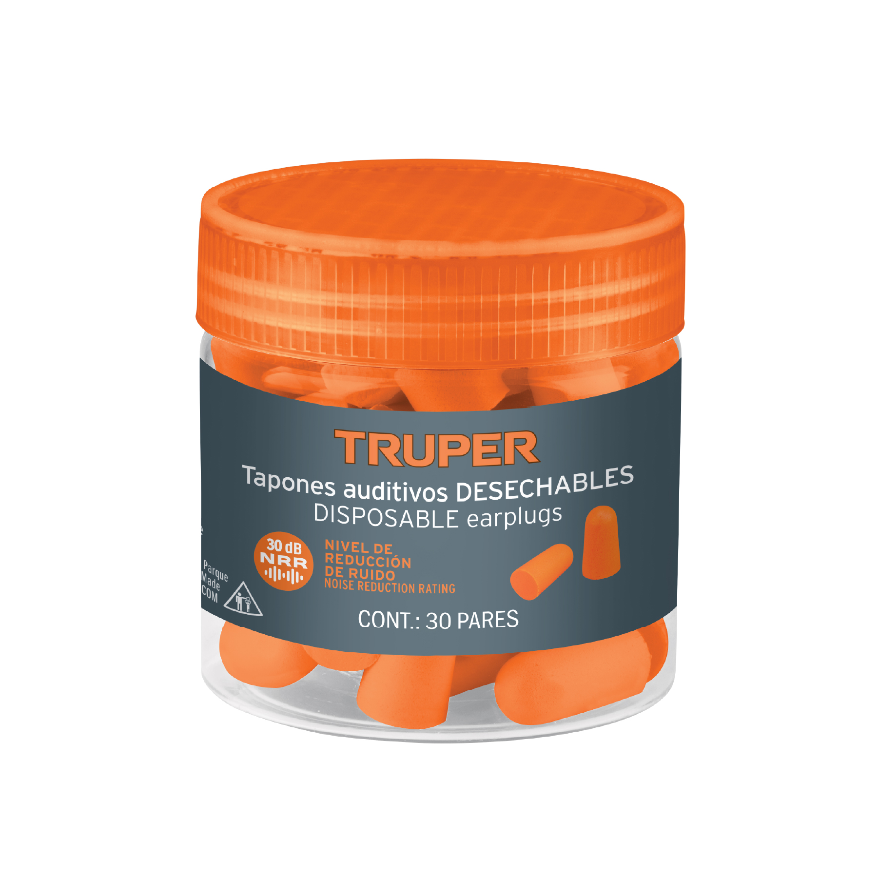 Bote con tapones auditivos desechables de espuma, 30 pares