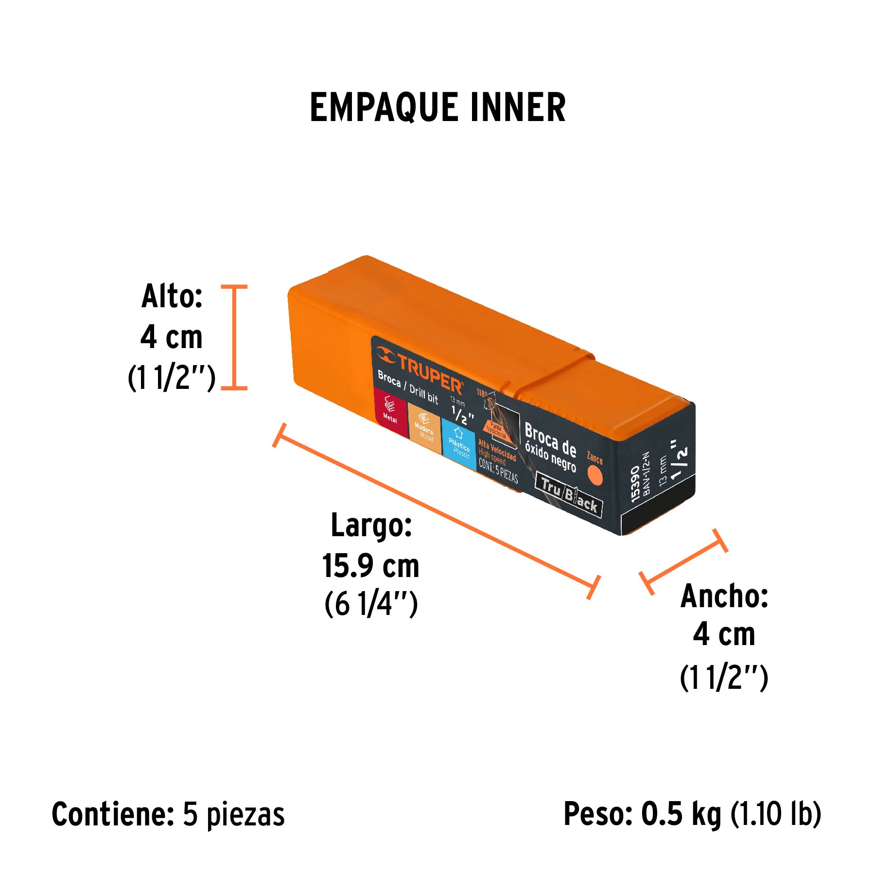 Broca HSS 1/2" Trublack para metal, TRUPER
