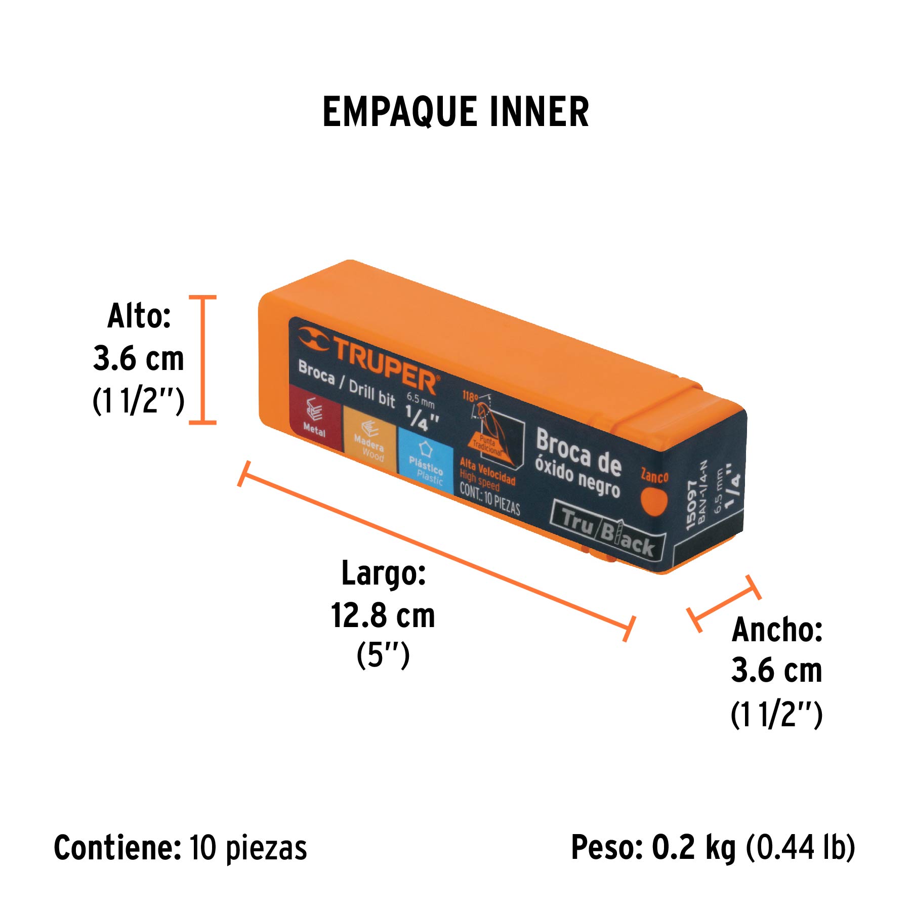 Broca HSS 1/4" Trublack para metal, TRUPER