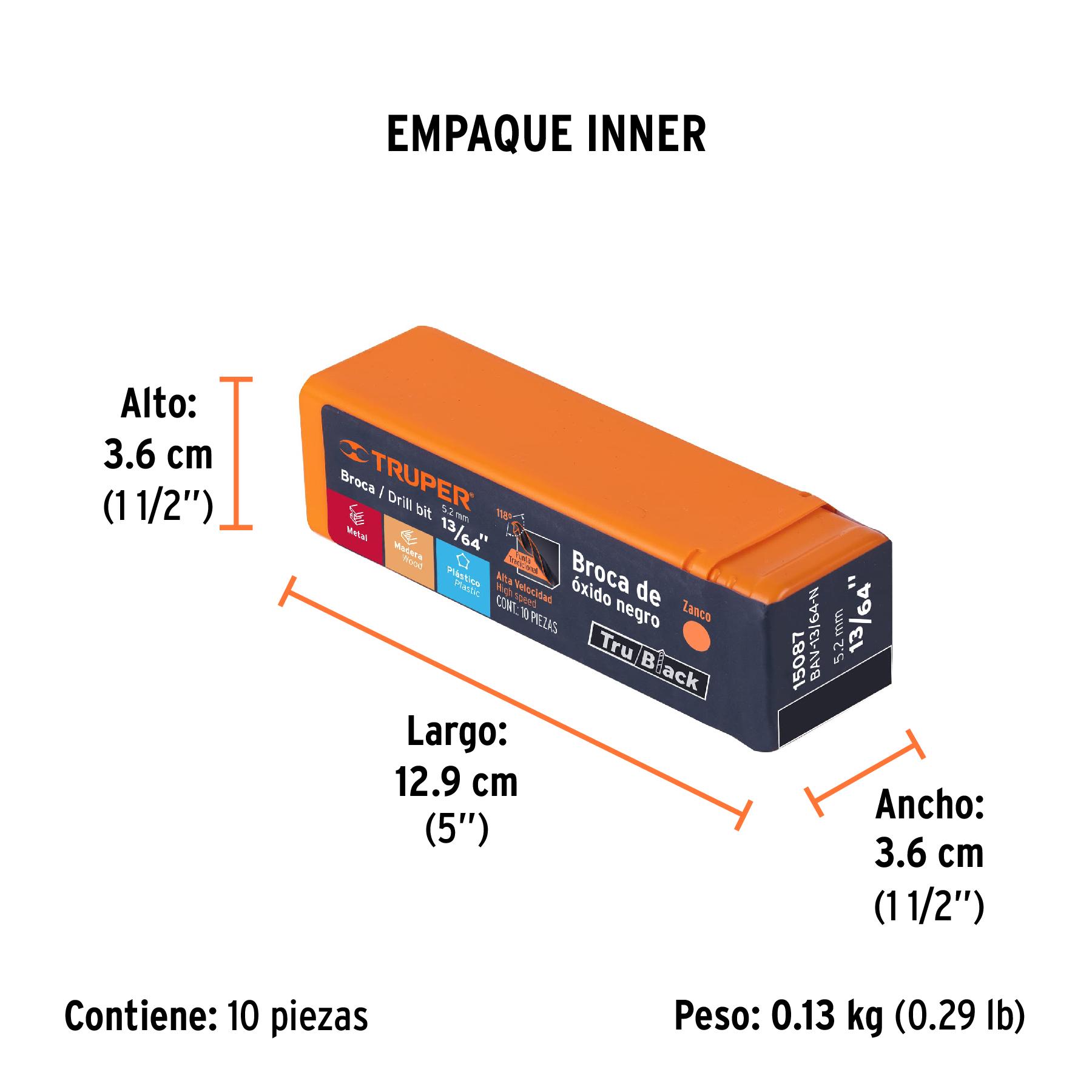 Broca HSS 13/64" Trublack para metal, TRUPER