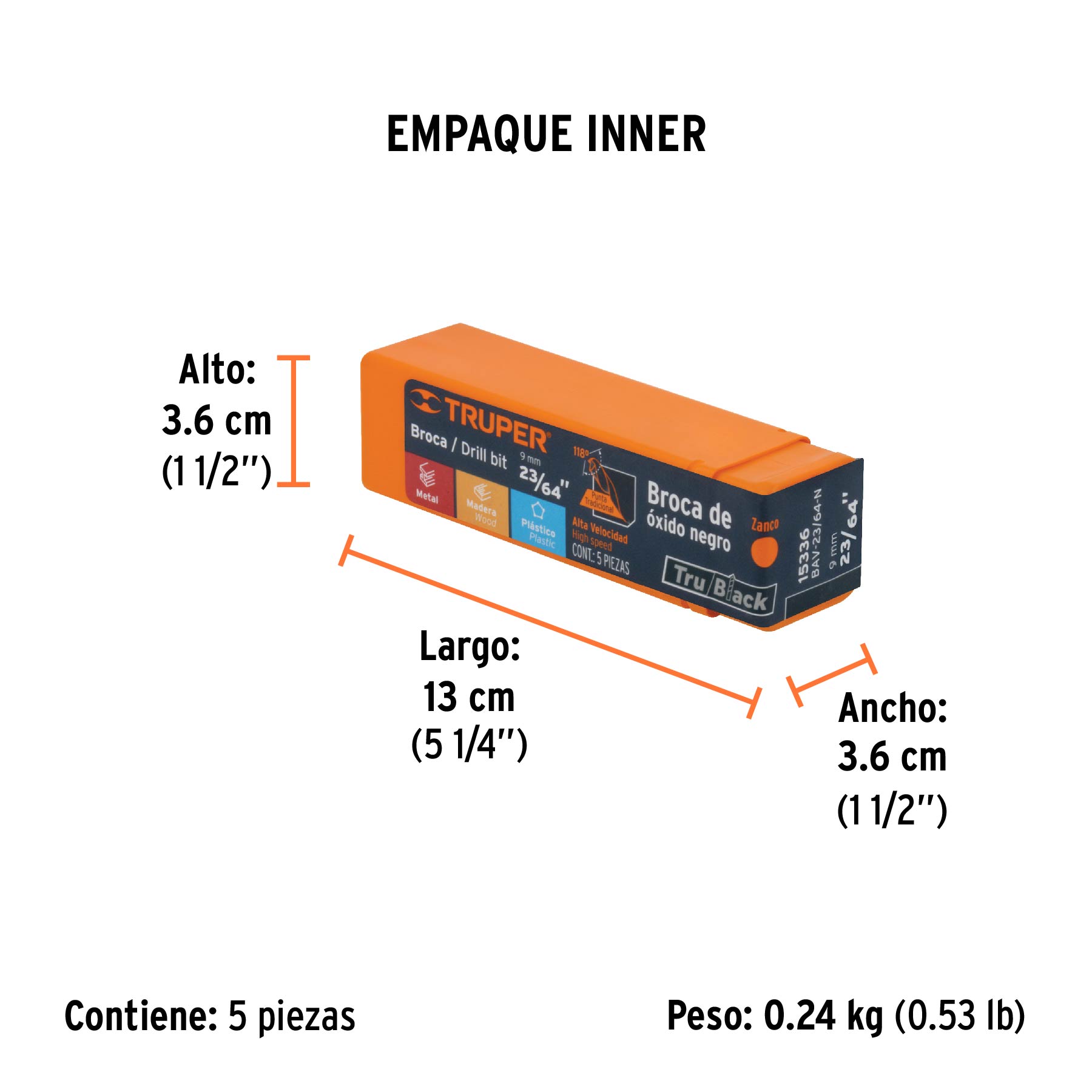Broca HSS 23/64" Trublack para metal, TRUPER