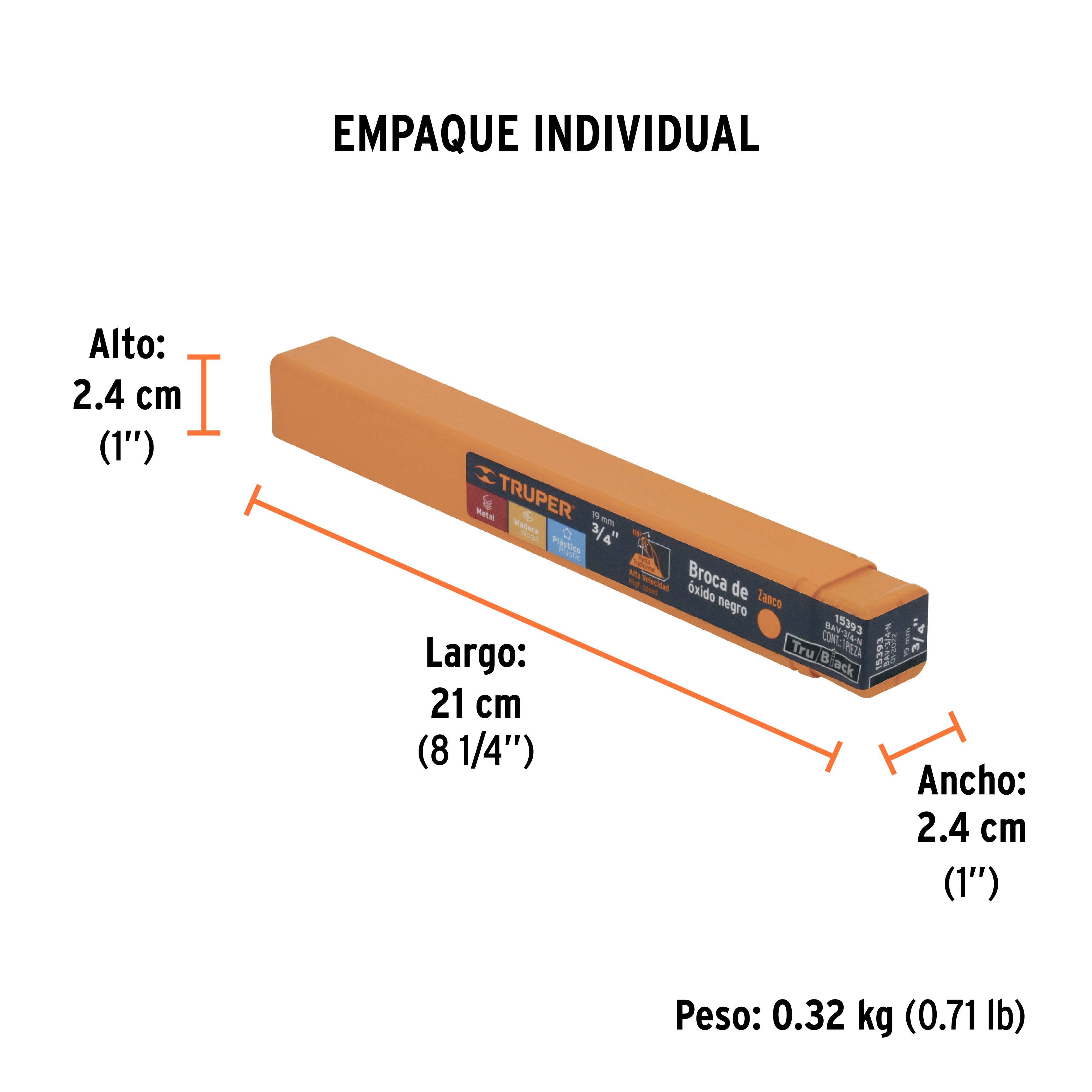 Broca HSS 3/4" Trublack para metal, TRUPER