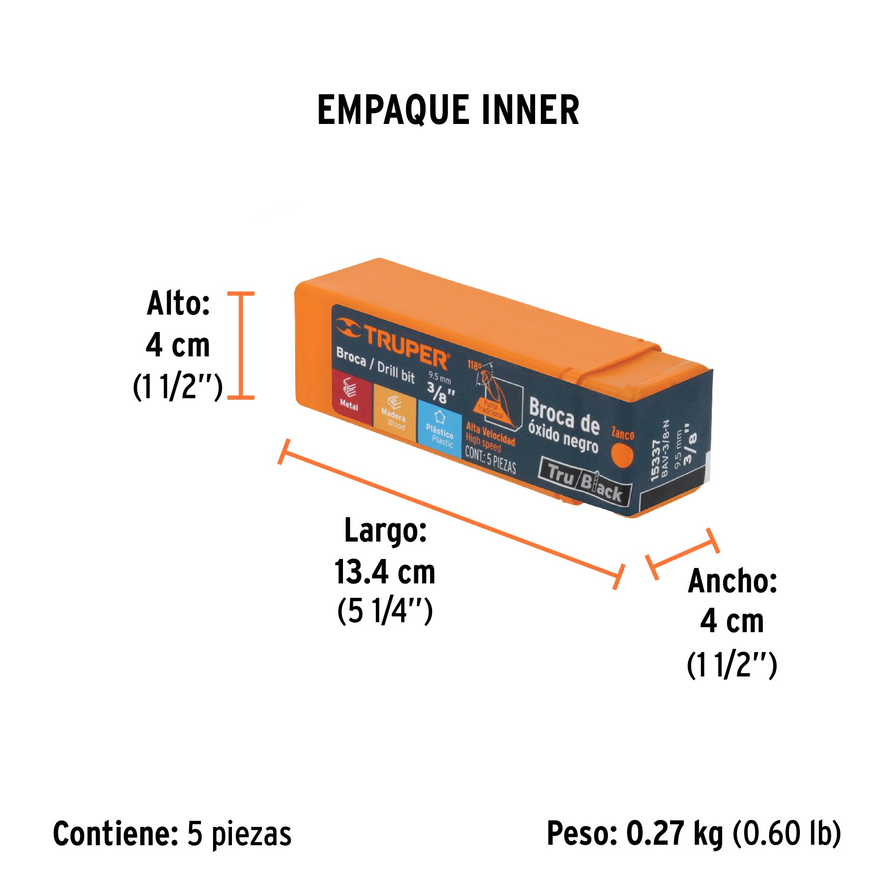 Broca HSS 3/8" Trublack para metal, TRUPER
