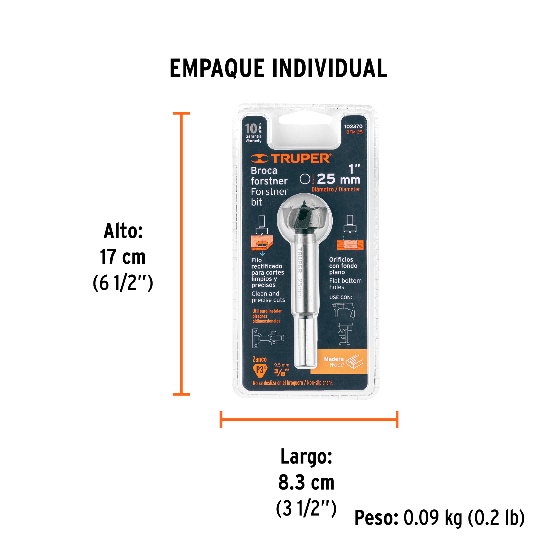Broca forstner 25 mm para madera, TRUPER